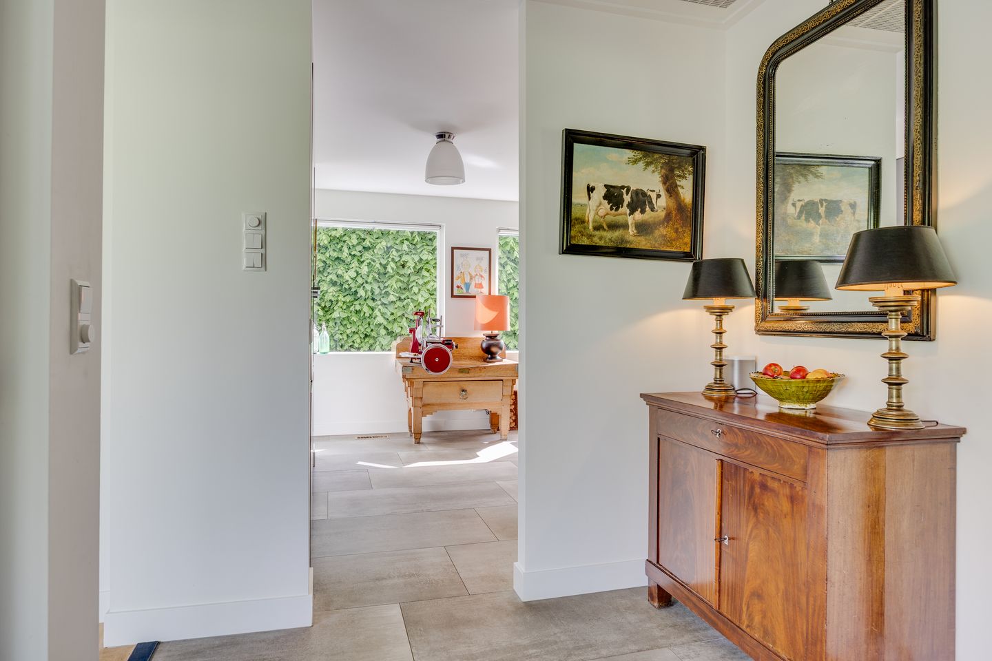 Binnen is de villa volledig gestript en heeft deze een compleet nieuwe indeling gekregen. De focus lag op het creëren van open, lichte ruimtes met grote raampartijen voor een optimale verbinding met de tuin en de Vecht. Alle technische installaties (elektra, leidingwerk), de keuken en het sanitair zijn vernieuwd.